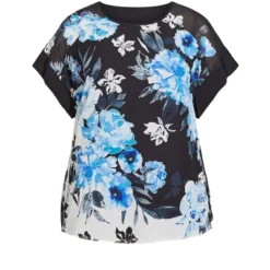 Women’s Plus Size Lace Trim Mono Floral Maxi Sleep Dress – Black | AVENUE