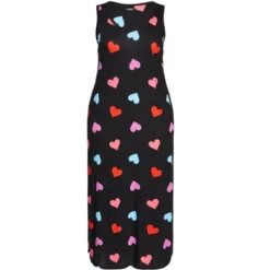 Women’s Plus Size Heart Print Maxi Sleep Dress – Black | AVENUE