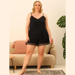 Agnes Orinda Plus Size Sleepwear For Women Pajamas Set Lingerie Lace Trim Shorts Nightwear