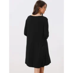 Cheibear Women’s Lace Trim Long Sleeves Pull-on Nightshirt Dress
