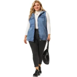 Agnes Orinda Women’s Plus Size Hoodie Zipper Up Pocket Denim Sleeveless Jacket Vest