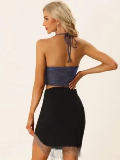 Allegra K Open Back Glitter Tops For Women’s Sleeveless Crossover Backless Glitter Halter Top
