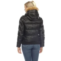 Women’s Removable Faux Fur Hoodie Bomber Leather Jacket – White Mark