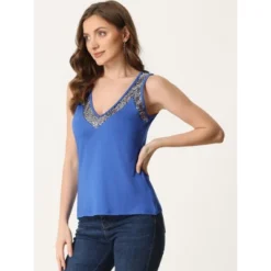 Allegra K Open Back Glitter Tops For Women’s Sleeveless Crossover Backless Glitter Halter Top