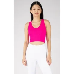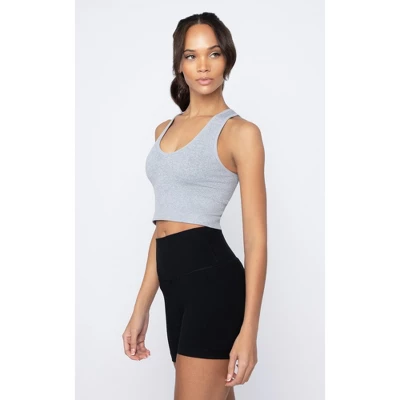 Express yourself in this versatile tank top from 90 Degree by Reflex while working out. It’s the perfect staple for women of all bust sizes. This is the top for you if you want extra support, definition, or more coverage throughout the day. Made of seamless fabric consisting of 92% Nylon and 8% Spandex, this cropped tank top makes you feel confident without worrying about this top digging at your sides. It is crafted with a chic ribbed design to help level up your outfits. Pair with our 90 Degree sports bras and biker shorts to complete the look.