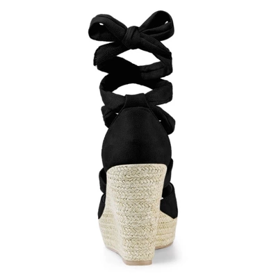 - Espadrilles, Platform Wedge Heel, Open Toe, Ankle Tie Up