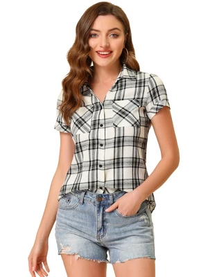 The classic plaid shirt can be mixed easily with a variety of styles. This plaid short-sleeved cotton shirt will become a quick go-to in your wardrobe. Style it with your favorite jeans or skirts for a casual look. Perfect for going out and traveling with friends. Occasions: Beach, weekend, gathering, daily, and so on. NOTE: 100%. Cotton: Red/ Green/ Blue/ Orange/ Yellow/ Brown/ Red Blue/ Brown Beige. 50% Cotton, 50% Polyester: White Black/ Beige Red/ Burgundy/ Red Black. 100% Rayon: Dark Green. 65% Polyester, 35% Cotton: Green Beige. 80% Polyester, 15% Rayon, 5% Spandex: Light Green. 95% Polyester, 5% Spandex: Pink.