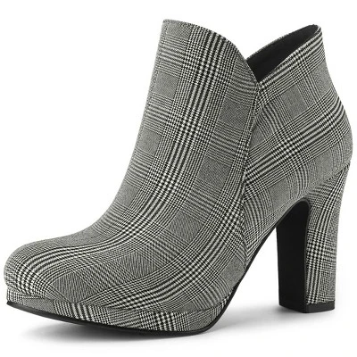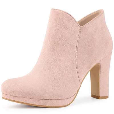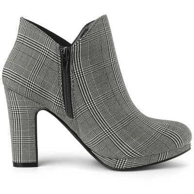 - Ankle Boots, Block Heel, Chunky Heeled Booties, Zip Closure