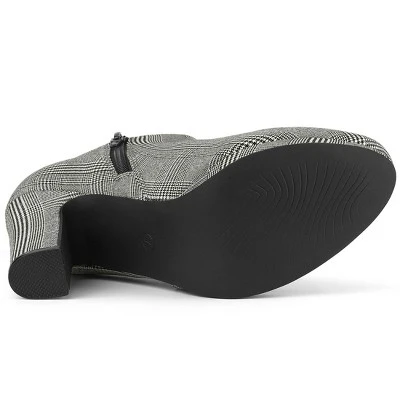 These suede ankle boots in black or yellow feature the plaid design, covered heels and the leather outsole. The classic design of block heels lends these elegant boots a timeless fashion. Add style and height to your everyday look. Provide a classic touch to your any attire that you choose to pair these boots with. Perfect for dating, working, hanging out, and parties.