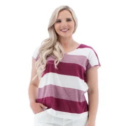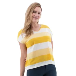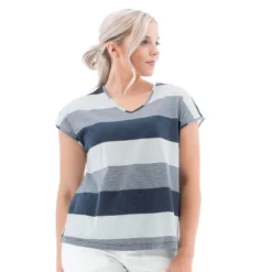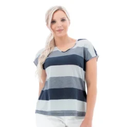 The Casey Striped Top is a standout sustainable style for summer. Crafted from 60% organic cotton, this top not only reduces its impact on the environment, but it also provides the familiar soft, pleasing feeling of cotton against your skin. With an attractive drape and flattering princess cut, this relaxed fit top will look as good as it feels. Enjoy the ease of pairing the subtle colorblocking, which adds a striped effect, to your favorite summer pieces. The other features we think you’ll like include a sweetheart V-neck, dolman sleeves, and a decorative strap at the back of the cutout.