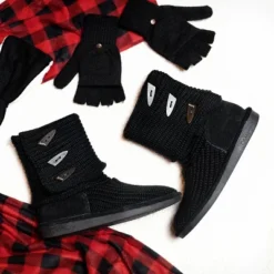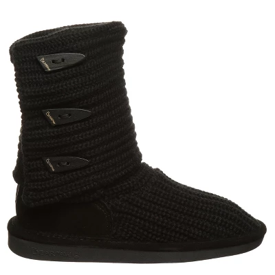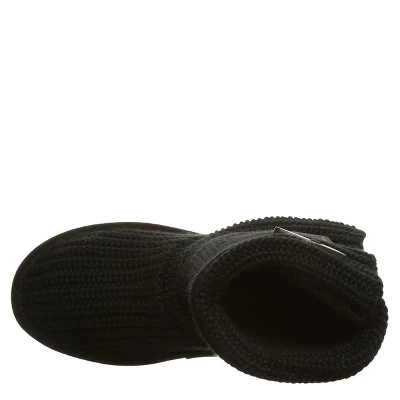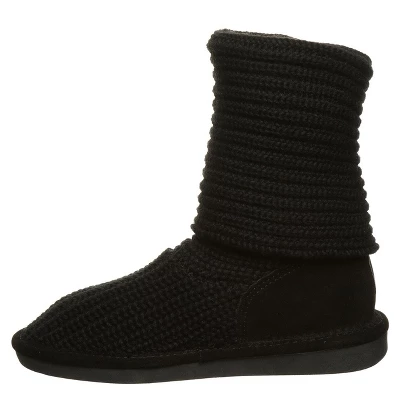 The Knit Tall Boot from BEARPAW is the epitome of cutting edge fashion craftsmanship and quality – you can wear these tall or folded down for a fun look. These unique, cozy boots utilize a knit upper for a warm snug fit with a rounded toe, a genuine sheepskin lining to wick away moisture for comfort. BEARPAW shoes and boots use the highest quality natural furs and genuine sheepskin.
