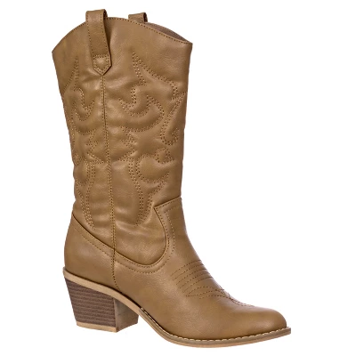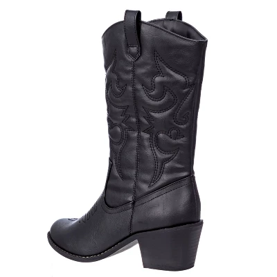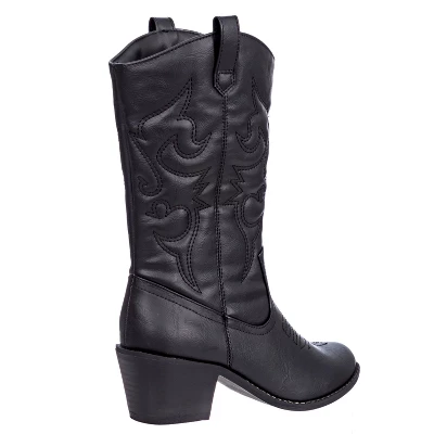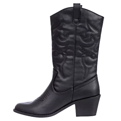 - Kicking it Cowboy Style: Ride to the head of the posse in this pair of vegan leather women’s mid-heeled boots that go with jeans or skirts as you please!