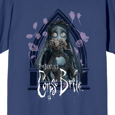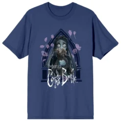 - CUSTOM DESIGN: Emily holds a bouquet of flowers at an altar while pink roses surround the image on this graphic tee. White letters below the character spell out the movie’s logo. Corpse Bride fans will love this fun design.