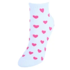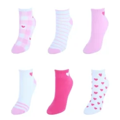 This 6-pair pack of ladies assorted low cut heart ribbed socks, are a perfect blend of playfulness and style. This sock pack includes six pairs of socks with heart prints in delightful pink tones, making them a standout accessory. The ribbed texture ensures a comfortable fit and long-lasting wear. Upgrade your wardrobe with these playful and stylish socks and provide your feet a fashionable option. Socks fit shoe sizes 4-10.