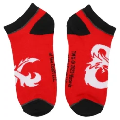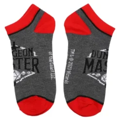 - CUSTOM DESIGN: Images of red dragons, D20 dice, the game’s logo, and black letters in a sword that read, “Dungeon Master,” decorate these ankle socks. Dungeons & Dragons players will love these fun custom designs.