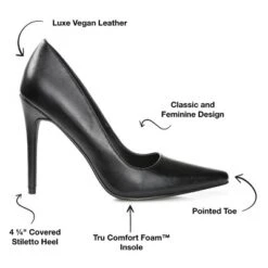 Jeans, cocktail dresses, and miniskirts, these pointed-toe heels go with just about everything. The Hadli heels by Journee Collection feature our signature vegan leather uppers lined with a 4 mm Tru Comfort Foam™ insole. A bold stiletto heel elevates this slip-on design for a leg-lengthening look. At Journee Collection, our pump styles will let you go from a fun night out with the girls to kicking back and relaxing at the end of the night without any trouble.