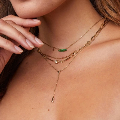 Want to try out the layered necklace look, but don’t know where to start? Meet the Jaimee Multi-Strand Necklace. A chic combination of a classic chain and Y-shaped necklace, this two-in-one style lets you get in on the layering trend, effortlessly.