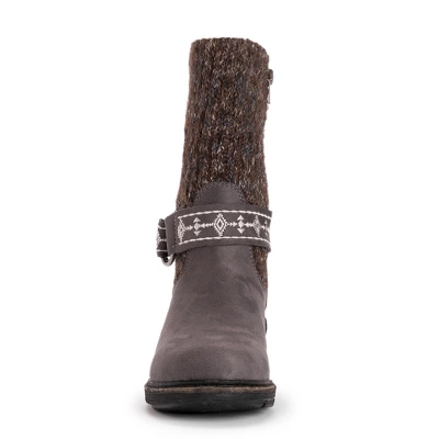 Hit the streets looking stylish in MUK LUKS® Women’s Arya Alice Boots. With faux fur to keep you warm when temps drop and cozy memory foam insole, this sweet zip up boot will be the perfect addition to your fall weather wardrobe. Wipe with damp cloth. Lay flat to dry. Imported. – Durable TPR Sole- 100% Polyester Faux Fur Insole- 60% Polyurethane, 40% Acrylic Knit- 100% Polyester Faux Fur Lining- Zip Up- Memory Foam Insole – Knit accent detail- 2.28’ Block Heel- Multiple Color Options- Women’s Sizes Whole and Half Sizes 6-11