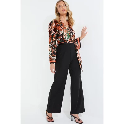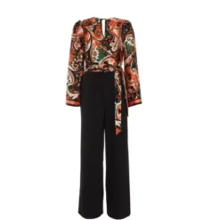 Stand out in this paisley satin jumpsuit. 2 in 1 design and palazzo style create a chic and stylish option for various occasions.
