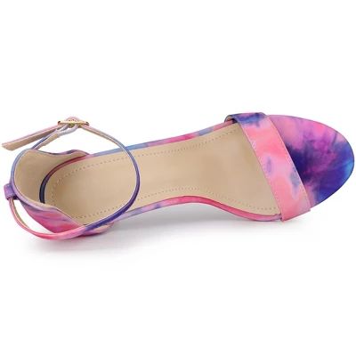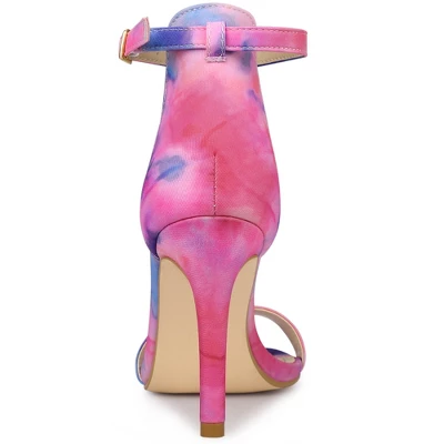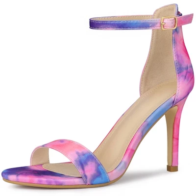 - Tie Dye, Stiletto High Heels, Ankle Strap, Opened Toe