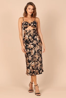 Fall in love with this gorgeous midi length dress! This must-have piece is perfect for any special occasion. Featuring a sweetheart neckline, thin adjustable straps and a twist detail on the bust, it’s sure to make you stand out from the crowd.