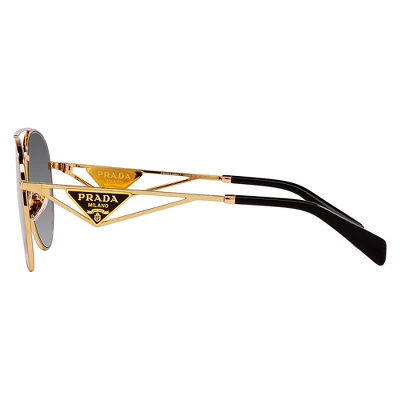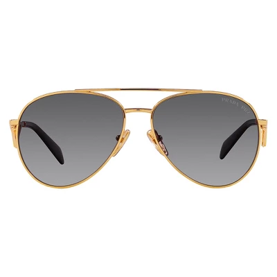 These Prada PR 73ZS 5AK5W1 womens aviator sunglasses, feature a gold metal frame and grey gradient lenses. Size and dimensions for the Prada model PR 73ZS are lens 61mm x bridge 14mm x temple 140mm. This frame will come with Prada box, case, cloth and paperwork, and they can be fitted with your prescription by your eye doctor.