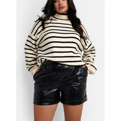 These shorts feature a textured croc vegan leather and a cuffed hem.