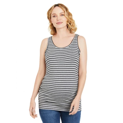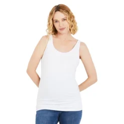 This basic sleeveless maternity tank top is a wardrobe must-have. Perfect for layering, this scoop neck tank is available in a variety of colors with just the right amount of length and stretch. Side ruching grows with the bump.