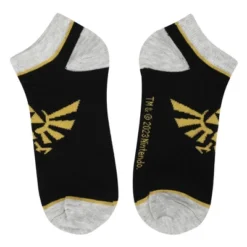 - CUSTOM DESIGN: Image of the Hylian crest with the triforce and a pair of wings appear in gray, black, and gold colors on these ankle socks. Fans of the Legend of Zelda video games will love this fun custom design.