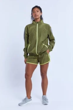 A performance outerwear piece to keep you warm and top off your activewear look. Built with an inner layer of mesh, zip pockets and a back vent, this lightweight jacket is perfect for a chilly jog, an early morning hike, or a walk around the frozen food section-plus it’s got reflective paneling at the sides for maximum visibility at night. Zip up and get going wherever you’re going.