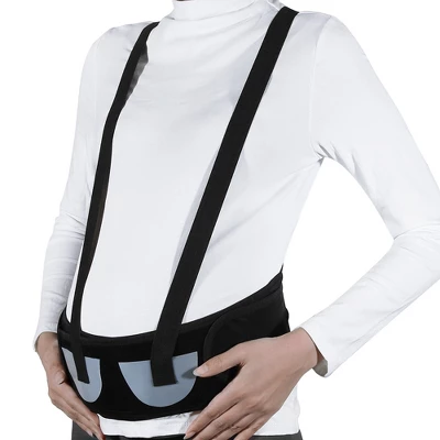 - Maternity belt wraps around the bottom of the abdomen, lifts with shoulder strap, provides support on the back.
