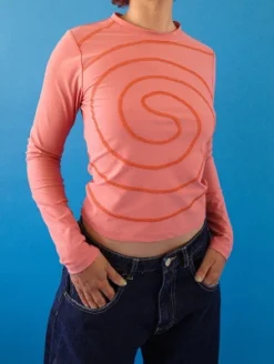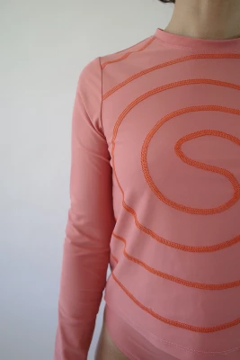 Your search for stylish high-coverage swim is over. MIGA SwimwearÂ’s Alyssa Spiral Swim Shirt is a unique swim-to-street piece, which features a hand-marked spiral design and has UPF50 to protect your skin during outdoor activity. This rash guard has a close-fitting crew neck and since it is slightly cropped, it pairs well with the Colette High Waisted Bikini Bottoms and the Ally Boy Short. MIGA Swimwear surveyed over 400 women, including members of the disability community, to find their favorite styles. All of their swimsuits are made sustainably in the USA.