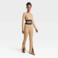 Move through your day in comfy, confident style no matter where it takes you with these High-Rise Split Flare Leggings from JoyLab™. Made from midweight fabric with spandex in a solid hue, these high-rise flare leggings are easy to pair with any of your favorite tops. The full elastic waistband provides a snug fit, and slits at both ankles finish off the chic look.