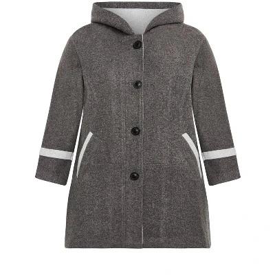 Don’t let your style leave you in the cold. Our Cindy Faux Wool Coat comes in a dark grey hue, an attached hood, and a contrast trim for a look that’s striking and practical in every way. Everyday style made easy, Avenue is your one-stop-shop for plus size fashion. Inspired by a comfort-meets-style approach, this effortless brand marries relaxed silhouettes with dynamic prints and colors. From casual daywear to staple denim, Avenue has simplified your everyday dressing. Take your day-to-day look to new heights with comfortable basics or eye-catchingly printed pieces, all designed to keep you comfortable while flaunting your curves to perfection. Available in sizes 14 – 40.