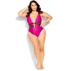 Channel bodacious beach chic in our unforgettable Vibeka Print 1 Piece. Offering a plunging neckline and power mesh lining to smooth, this swimsuit ticks all the boxes!Amp up your swim style with a printed coverup and statement tassel earrings.Bold, Stylish, glam and chic, no one does plus size fashion like City Chic. Loved around the globe for its diverse range of fashion-forward designs, City Chic flaunts figure-loving styles for any occasion. From show-stopping evening gowns to workwear and casualwear, City Chic will take your style to bold new heights. Available in sizes 12 – 24.