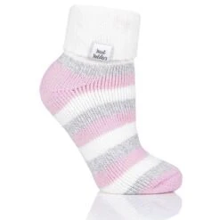 Only available in this size at this time.The same warmth and comfort as the ORIGINAL™ Heat Holders® Crew sock, but in a shorter ankle length with pretty rib turn over cuffs! Ideal for sleeping at night. Wrapped in a decorative ribbon, these sleep socks make a thoughtful gift!Keep feet warm on the coldest of nights and pull on this pair of rib cuff, ankle length Heat Holders® for women, the warmest thermal sock.Thick, chunky and with a massive tog rating of 2.34, Heat Holders® are made from a specially developed heavy bulk yarn which has extreme thermal qualities. With long pile cushioning, these thermal socks will help keep feet fully comfortable and supported.The inside of each sock has been intensively brushed such that they not only feel sensationally soft but also trap warm air close to the skin keeping your feet warmer for longer.Heat Holders® are non-binding; they are also diabetic friendly and provide relief for cold feet due to circulation problems.