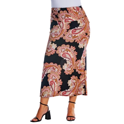 Unleash your inner bohemian goddess with the Womens Black Paisley Print Plus Size Foldover Maxi Skirt, a captivating blend of style and versatility that will take your breath away. This ankle length skirt boasts a mesmerizing paisley print on a black canvas, creating an effortlessly chic and enchanting look. The foldover waist adds a touch of elegance while offering customizable comfort for the perfect fit. Whether you are looking to dress up for a special occasion or embrace casual sophistication. Crafted from a comfortable stretch material, it moves with you, ensuring both freedom of movement and endless compliments.